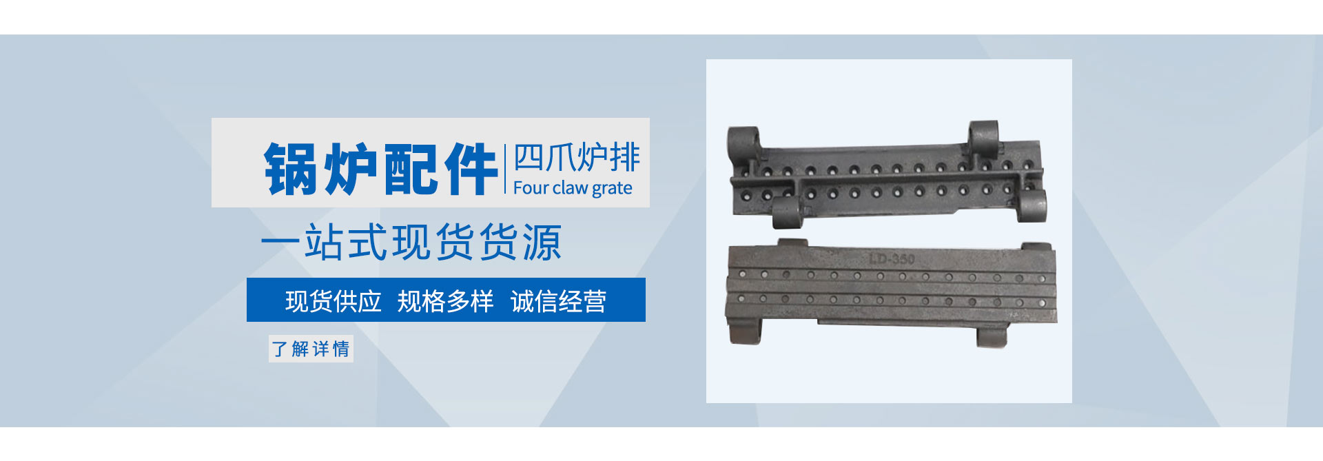產品有橫梁爐排,活芯爐排,往復爐排,合金爐排,四爪爐排,鱗片爐排,省煤器管,鏈條,刮板,除渣機刮板等